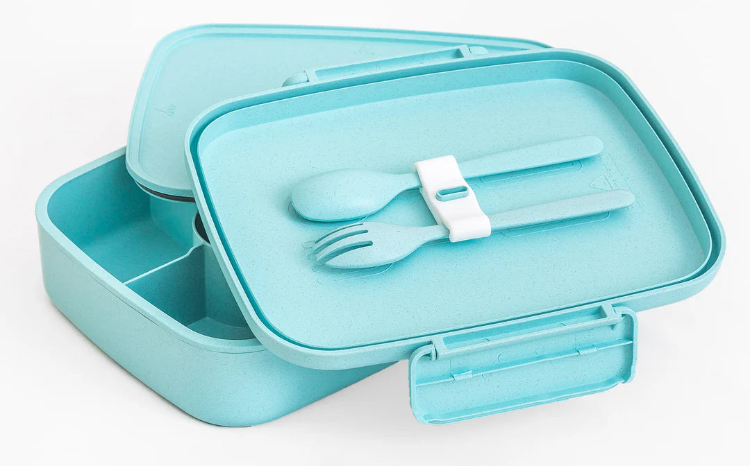 Deep compartments that are leak proof with the internal lid attached. Dishwasher safe and made from BPA free food grade wheat straw and polypropylene.