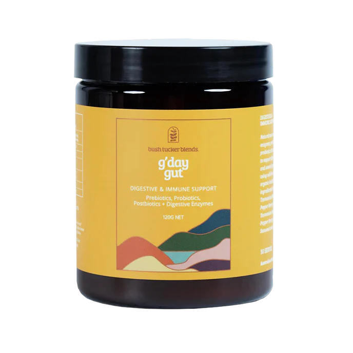 This Gut blend is scientifically formulated by a team of naturopaths, nutritionists and food scientists to harness the power of Australian native medicinal plants and fruits. This powerful gut blend uses natural digestive enzymes and fibre to flood cells with nourishing nutrients. All these ingredients work synergistically together to offset imbalances in the gut created by everyday stressors, sugar, antibiotic use, bad bacterial overgrowth, processed foods, alcohol and an unbalanced lifestyle.