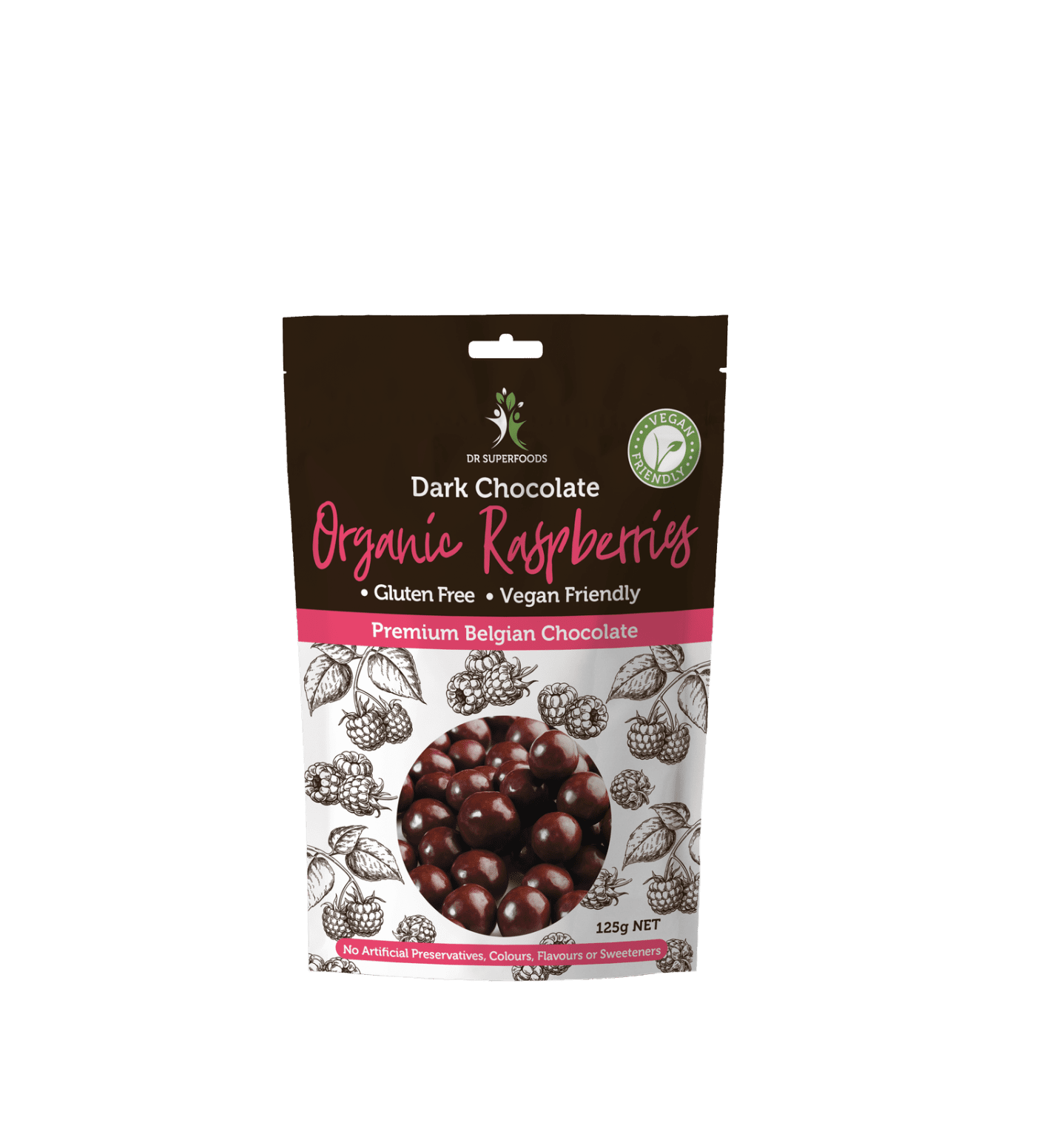 Dr Superfoods uses premium vegan-friendly Belgian Dark Chocolate to coat our organic dried raspberries. To describe it in one word – DIVINE. Our dark chocolate organic raspberries are 100% natural with no artificial preservatives, colours or flavours. Both raspberries and dark chocolate are high in antioxidants, meaning you can enjoy a guilt free indulgence that is also gluten-free.