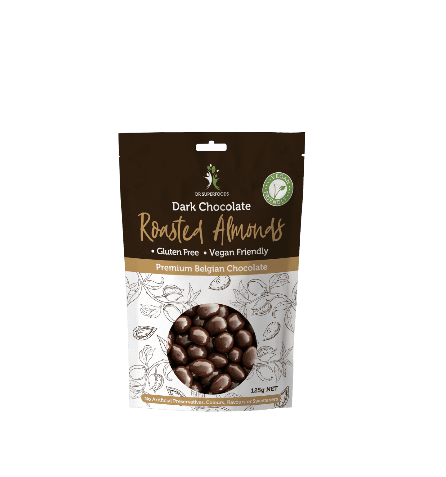 Premium roasted almonds are coated in smooth vegan-friendly Belgian dark chocolate. Our dark chocolate is approximately 60% cocoa which achieves the perfect balance of smooth taste and beneficial antioxidants.