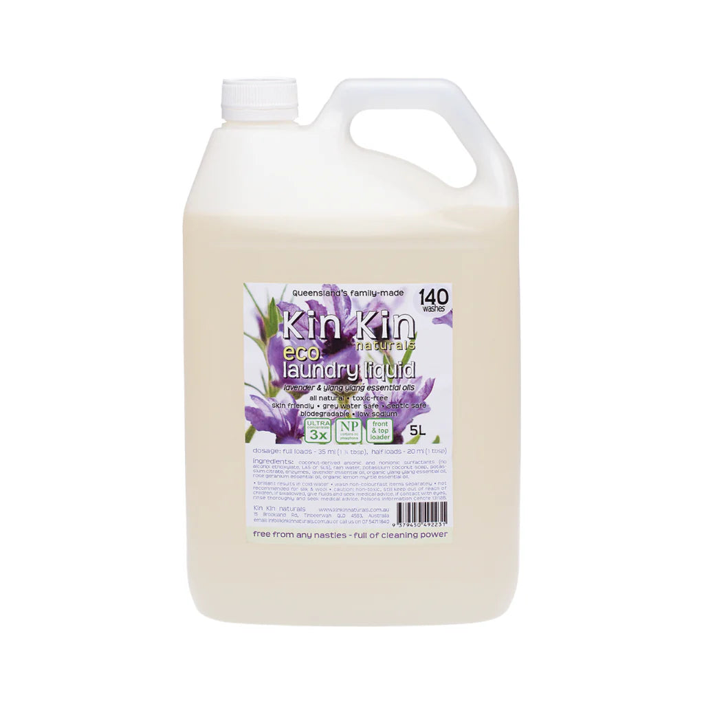 Kin Kin Natural’s Lavender & Ylang Ylang Eco Laundry Liquid is made from all natural, plant-based ingredients to create an ultra concentrated laundry liquid with a calming aroma that will leave your clothes dirt free and fresh-smelling. With a coconut and mineral base, it’s been expertly formulated to be free from nasties and full of cleaning power. Like all Kin Kin Naturals laundry liquids this one’s skin friendly, toxin free, low sodium, and biodegradable - making it grey water and septic safe!