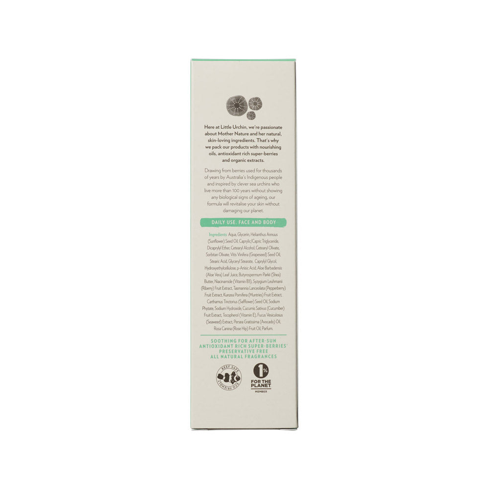 LITTLE URCHIN Natural Daily Moisturiser is specifically designed for your daily skin hydration needs. Our precious and unique blend of natural and organic ingredients provides long-lasting hydration that restores, nourishes and replenishes your skin.