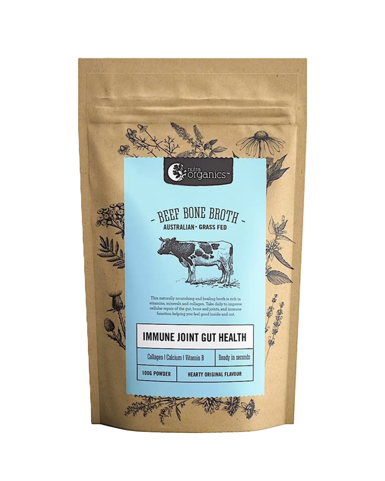 Beef Bone Broth Hearty Original is naturally nourishing with a source of collagen, zinc, and B vitamins to support immunity, energy, and gut wellbeing. Naturally delicious and gently refractance dried into a powder for maximum nutrients, Nutra Organics broths won't be beaten on flavour & nutritional benefits.