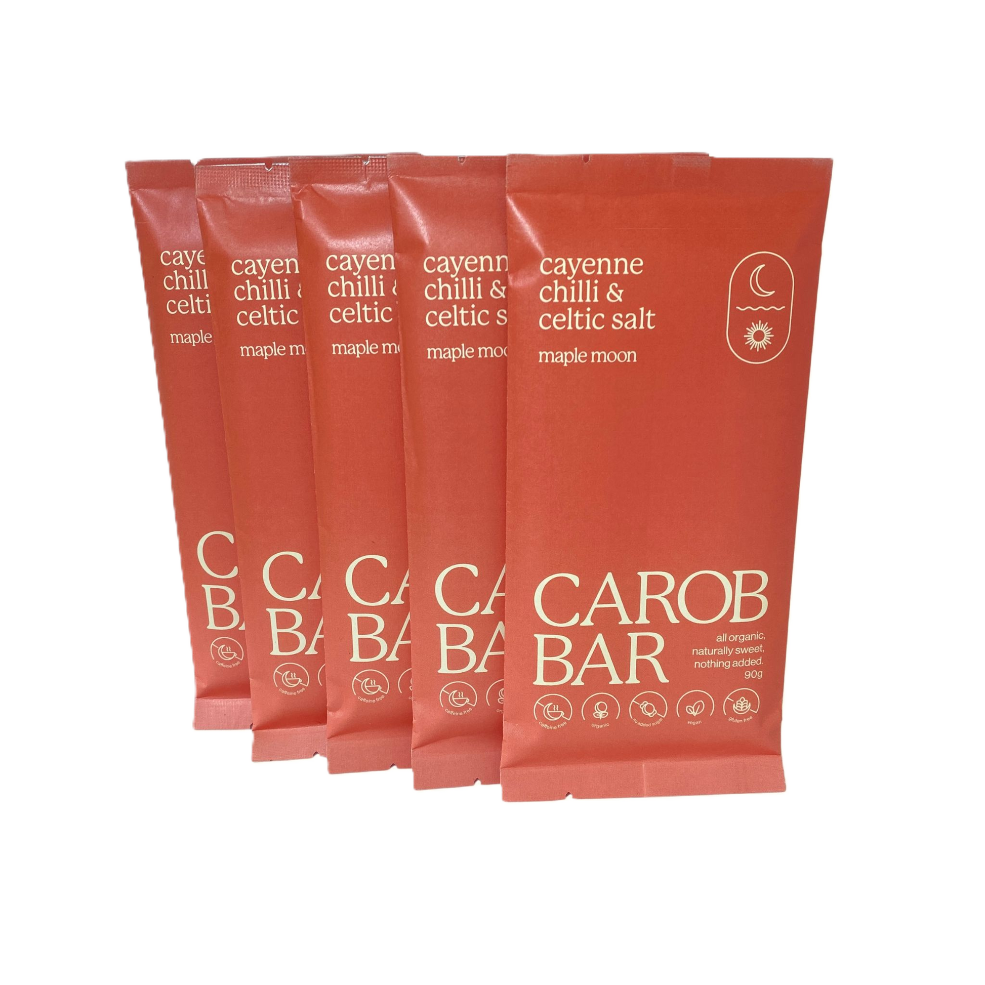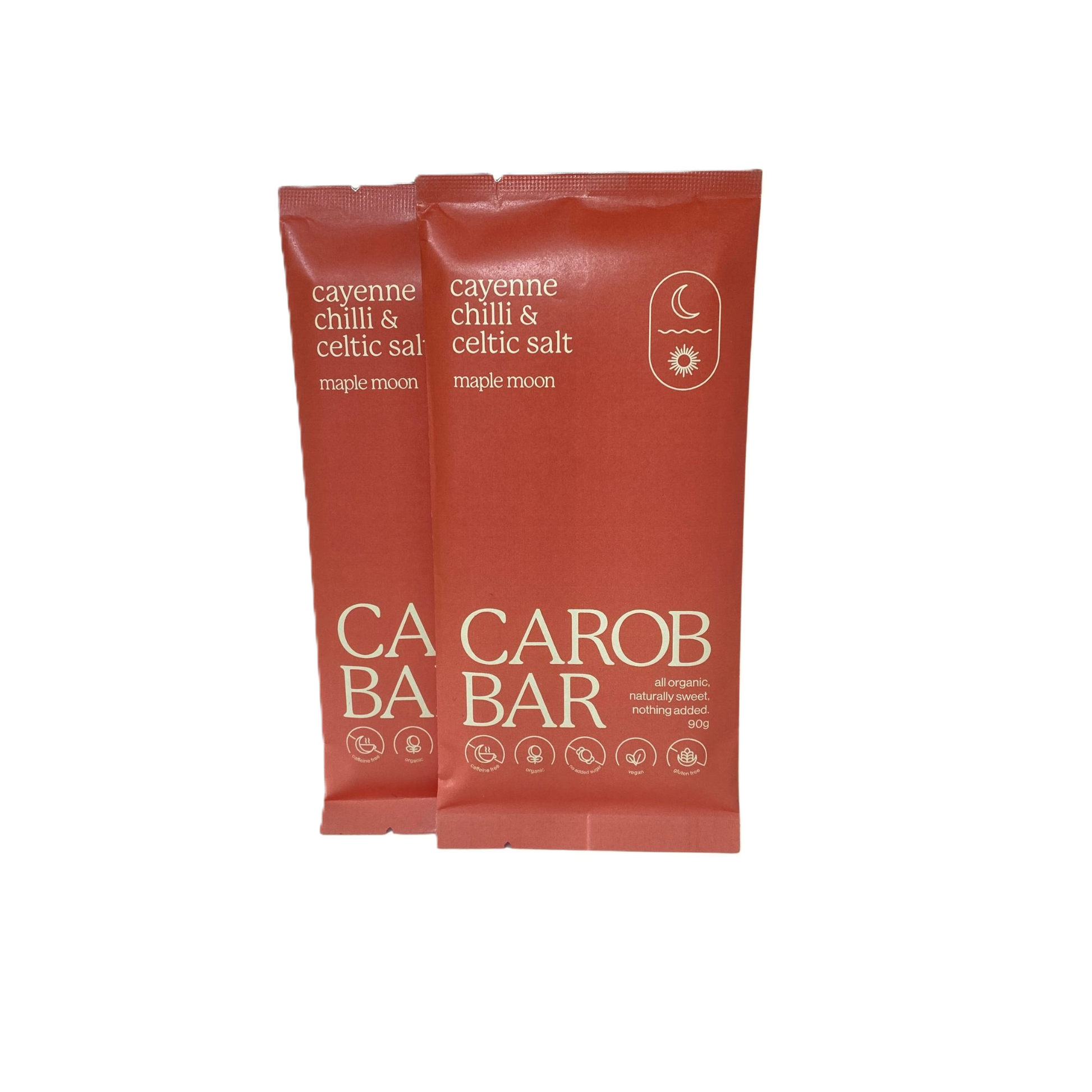 Maple Moon Cayenne Chilli & Rock Salt Flavoured Carob Bar is the perfect match for those who desire a choco hit without the caffeine buzz.
